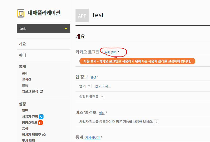 - 카카로 로그인 사용자 관리 설정을 들어갑니다.