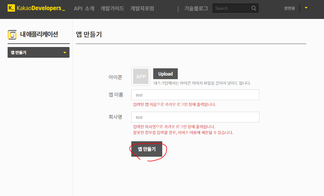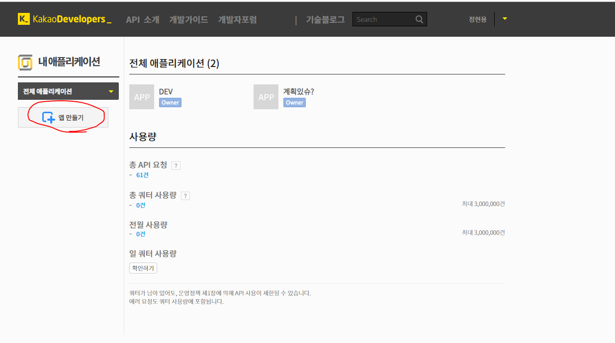 - 연동을 시작하기 앞서 앱을 먼저 생성해야 합니다.