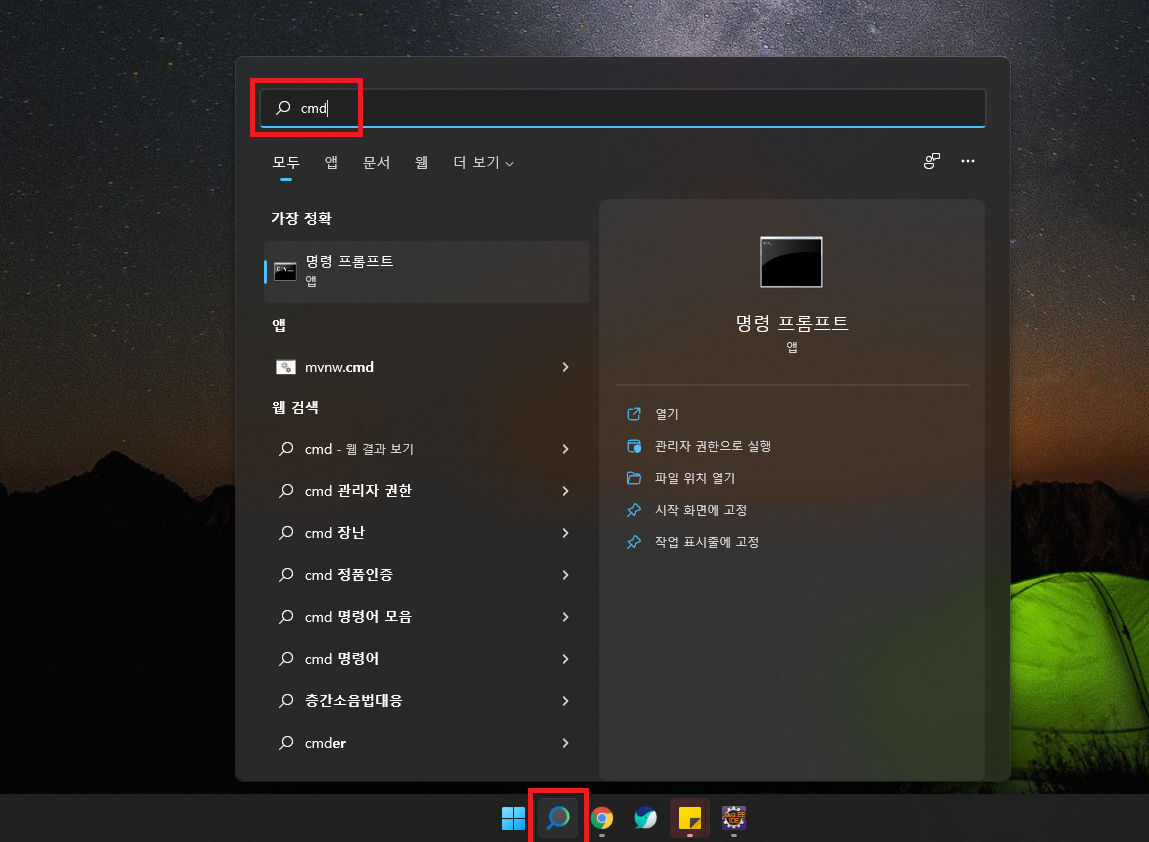 1. 명령 프롬프트 창 켜기