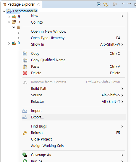 (순서) - Export -> java에 JAR file -> JAR file에 경로와 jar파일명 설정후 Finish (하단 이미지 참조)